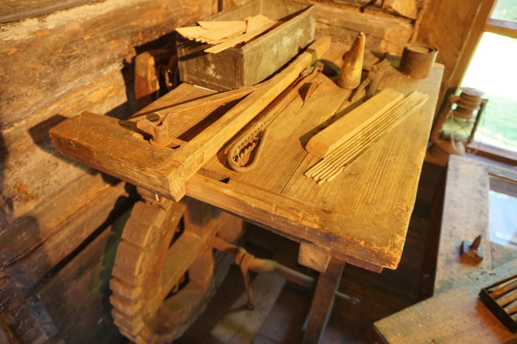 Pilt August Teppo talumuuseumist, millel on eksponeeritud lauasaag, kus saeketas käis ringi jalaga vändates, nagu vokil, lõikesuurust seadis joonlaud. Kas tegemist on käsitööga sellel masinal töötades? Ning kas August Teppo pillid on masinatöö või käsitöö?