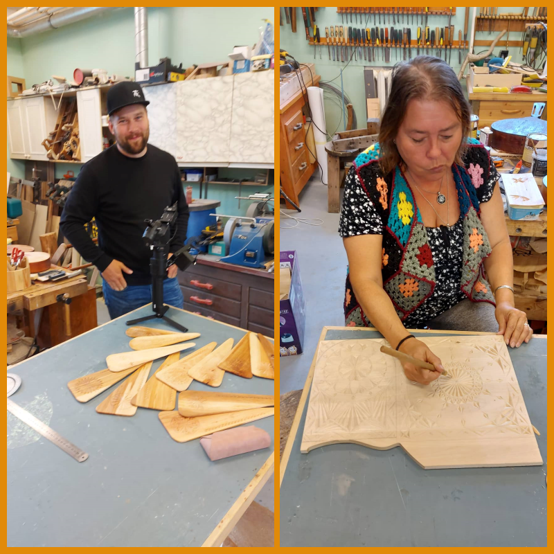 Pildil operaator Kristjan Madalvee ja puulõiget tegemas Piret Täht.