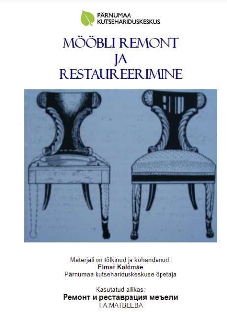 Pärnumaa Kutseharidkuskeskuse õpimaterjal. Asjalik ülevaade mööbli taastamisest, vabalt saadav kõigile lugemiseks . Link